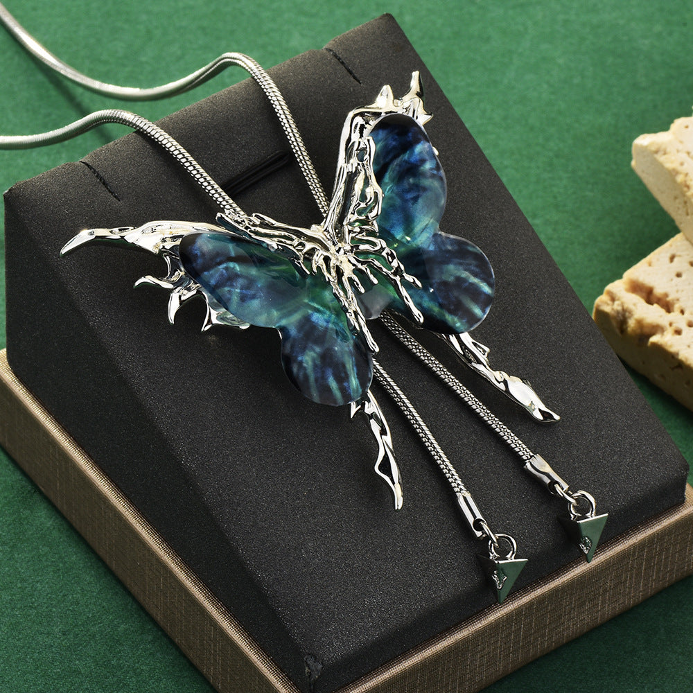 Elevate your accessory collection with this sophisticated blue butterfly tassel necklace, designed for those who appreciate versatile elegance. The standout feature is its replaceable butterfly piece, allowing you to customize your look effortlessly and extend the necklace's lifespan. The adjustable design ensures a perfect fit for any neckline, while the tassel detail adds refined movement and dimension. Ideal as a sweater chain or standalone statement piece, this necklace combines timeless style with practical innovation. Perfect for layering or wearing solo, it's a wardrobe essential that adapts to your personal aesthetic.